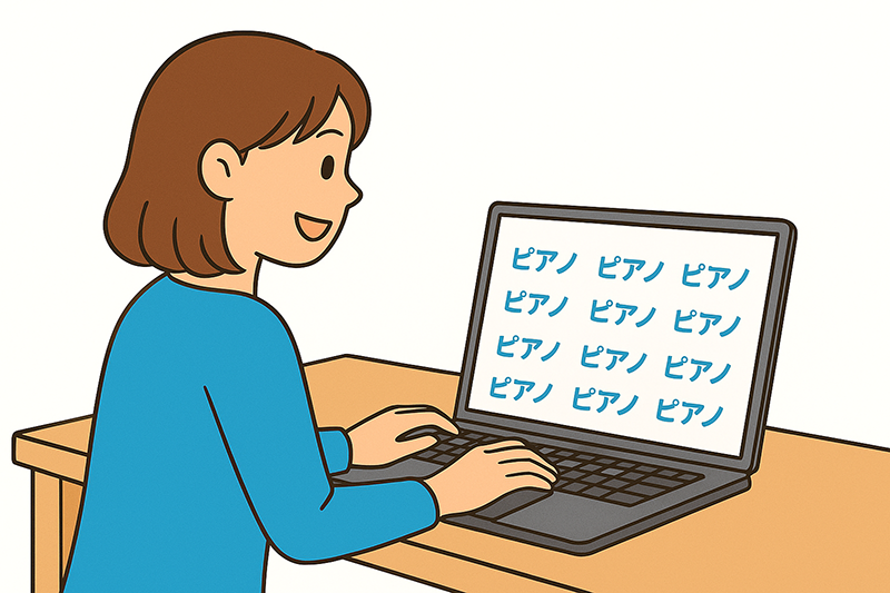 たとえば、「ピアノ教室」を何度も使う代わりに、「レッスン」「音楽教室」「教室」などの言葉に言いかえることで、自然でやさしい印象になります。